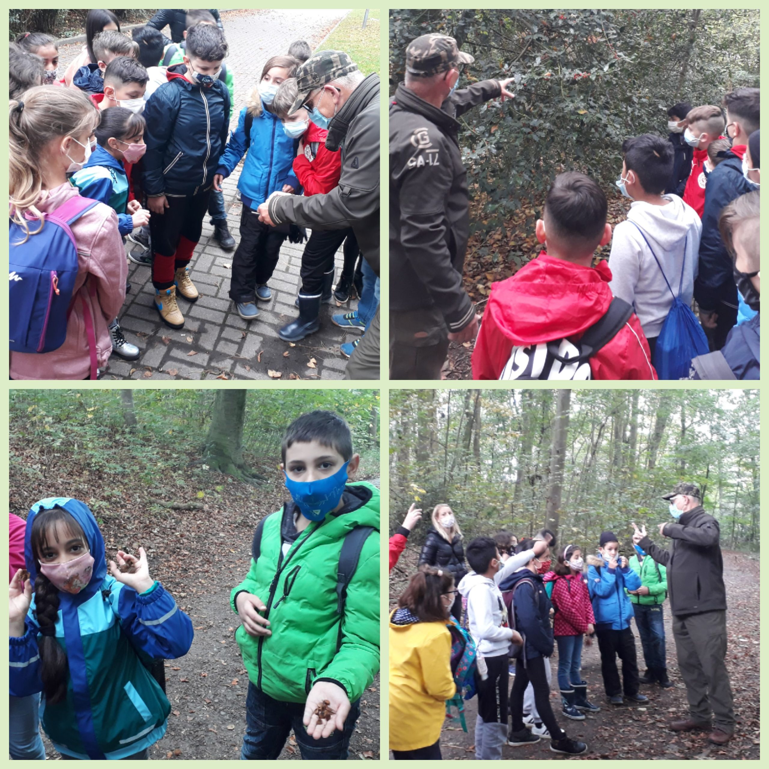 Heute waren war im Gysenberger Wald. Der Jäger Herr Lütjens hat uns dort eine Menge gezeigt und wir konnten viel von ihm über den Wald lernen.